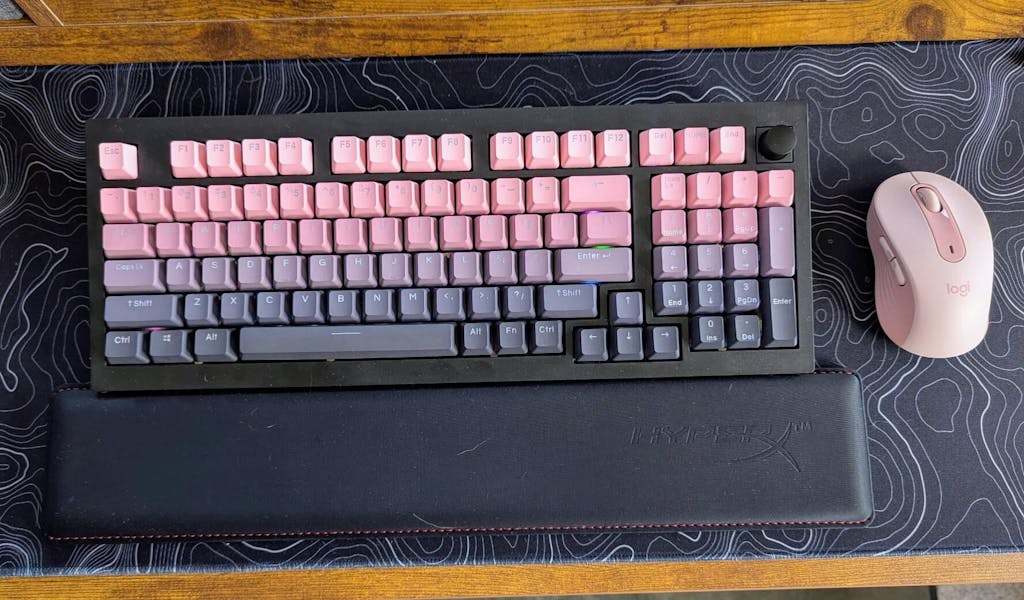 These keys are SOOOO cute and perfect for my setup. Black, pink, and mauve are my favourite colours, so they really hit the mark for me. They’re also quieter than my last keycap set, though i do add silicone bands to reduce impact noise. There’s enough keys and extras to make sure any keyboard has what it needs. Works perfectly on my SteelSeries, which is — in my experience — notorious for not playing nice with third party keycaps.