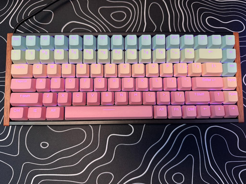 An excellent quality keycap set that feels great to type on. It features a beautiful design with gradient colors. The front print legends let RGB backlighting shine-through perfectly (best with north-facing switches). It is easy to install and fits various keyboard layouts. Order today and elevate your typing experience!