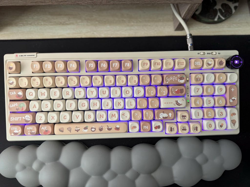 love these keycaps so much! i switched out the stock keycaps on my epomaker rt100 model and the sound & feel is so satisfying. these keycaps made my keyboard sound even more creamier. the coconut design is absolutely adorable and makes work even more enjoyable. super fast shipping and well-packaged. highly recommend!
